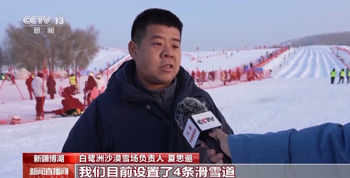 博湖县位于艾勒逊乌拉沙漠边际,冬季降雪少。当地依托沙丘形成的坡度,通过东说念主工造雪的方式将沙丘打变成雪说念,通过沙漠与冰雪的专有组合,不仅为当地全球提供了冬季失业文娱的场地,也为当地冬季旅游产业发展注入新活力。