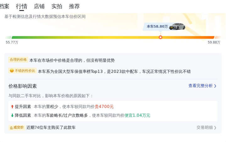 奥迪A8 2023款 A8L 50 TFSI quattro臻选型二手市集行情价为62.22—74.62万,本车售价58.8万,低于行情价,是一个可以的采纳。
