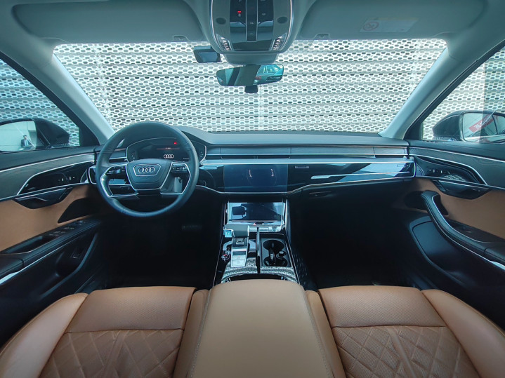 提到奥迪A8,咱们不得不先先容一下奥迪“quattro”四轮运转系统。quattro是意大利语中“四”的好奇,代表奥迪的四轮运转期间。1980年奥迪在法兰克福车展上初次提议这一见解,并运用于奥迪Quattro车型上,从此奥迪在四轮运转系统的期间研发上走在了世界前方。奥迪A8行为奥迪轿车家眷中的顶级车型,自1994年推出第一代车型以来,历经几代窜改与发展,已成为与飞奔S级、良马7系王人名的世界顶级豪华轿车之一。接下来让咱们沿路望望这辆二手奥迪A8 2023款 A8L 50 TFSI quattro臻选型。