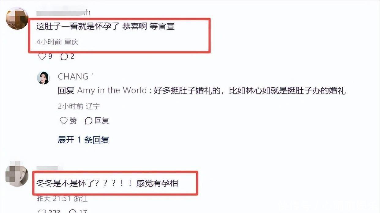 此次徐冬冬孕相曝光之后,驳斥区差未几皆备在祝颂,有网友说“八年磨一剑,总算修成正果啦”,也有东说念主叹惋“尹子维的坚捏完全值得”,还有东说念主留言“这才是真爱的神情,兜兜转转终于回到你身边了”。