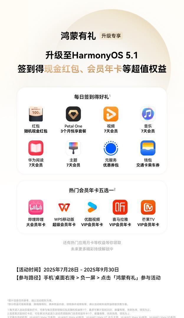 这个暑期档几乎是追星党的狂欢,杨洋和金晨的超绝CP感让我磕得不知寰宇为何物。动作一个及格的追星女,必须电视剧、原著、OST“修仙大全套”全拿下,没思到鸿蒙运用径直给咱追剧党备皆了,这谁能忍得住不追啊! 更让东说念主惊喜的是,手机系统升级鸿蒙5.1后,这修仙体验还自带Buff!升级后在桌面右滑到负一屏点“鸿蒙有礼”,每天签到能领立时现款红包和多个影音会员福利,况且首签后第30天签到连b站、优酷、芒果TV等热点视频会员年卡都能领,很难不动心!无谓费钱买会员,升级就能白嫖一整套追剧“装备”,径直开启“修仙”追剧大冒险。