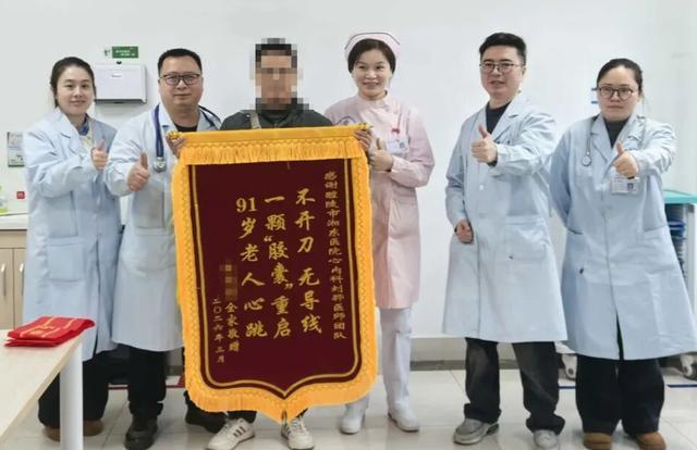 术后患者复原精致,顺利出院。为表感谢,患者家属送来一面印有“不开刀,无导线,一颗胶囊重启91岁老东谈主心跳”的锦旗。
