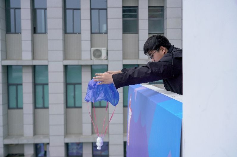 为了延迟降落时分,不少同学给鸡蛋作念了塑料袋“降落伞”;为了减小落地时的冲击力,同学们更是给鸡蛋作念了各式柔嫩又包裹性很好的“外套”。即便如斯,有的鸡蛋在落地时仍未免破灭,频繁此时,现场会一都发出叹惋声。而如果鸡蛋在空中飘落的时分长,落地时声息也较小,全球会一齐惊呼,预判到这是一次得手的“鸡蛋撞地球”。